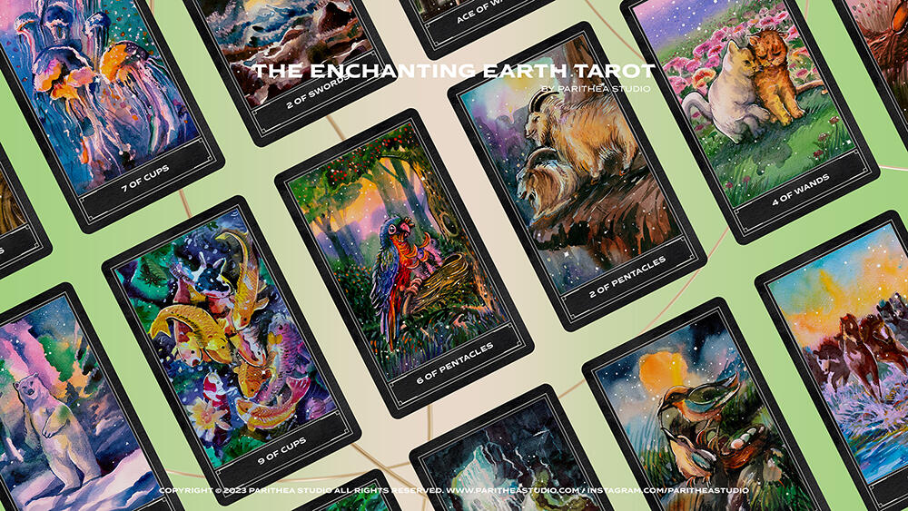 Hi! I am Mila Parichat W. I am an illustrator based in Bangkok Thailand. I create tarot decks and oracle cards.Parithea Studio is owned by Mila & Mint (My sister). We are artists and wholesalers. We collaborate with local artists to our create Tarot projects.Our Tarot decks are real traditional watercolor paintings scanned and color graded in Photoshop. We also do Digital Painting for future projects as well.If you are interested in our latest Tarot deck "The Enchanting Earth Tarot Deck", please share and subscribe to our social media to receive news, promotion, and updates about the deck & pre-order. Get in touch!
