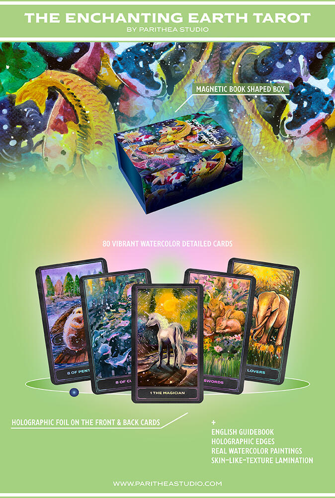 Hi! I am Mila Parichat W. I am an illustrator based in Bangkok Thailand. I create tarot decks and oracle cards.Parithea Studio is owned by Mila & Mint (My sister). We are artists and wholesalers. We collaborate with local artists to our create Tarot projects.Our Tarot decks are real traditional watercolor paintings scanned and color graded in Photoshop. We also do Digital Painting for future projects as well.If you are interested in our latest Tarot deck "The Enchanting Earth Tarot Deck", please share and subscribe to our social media to receive news, promotion, and updates about the deck & pre-order. Get in touch!